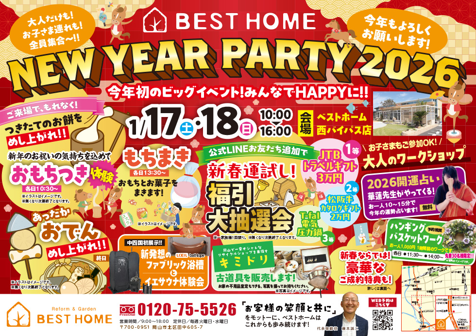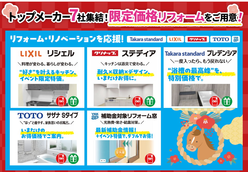 ニューイヤーパーティ2026を開催!トップメーカー7社集結!限定価格リフォームをご用意!
