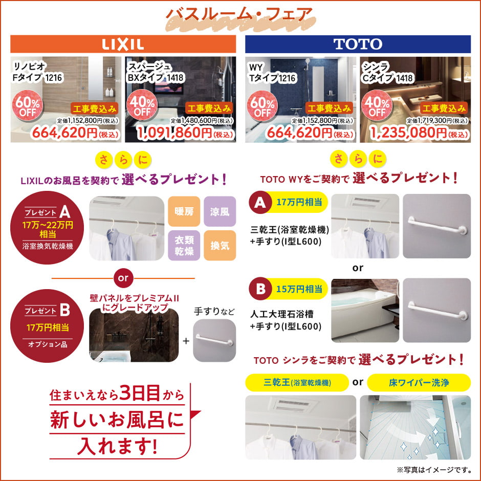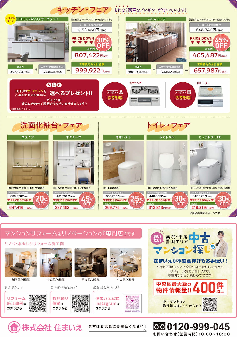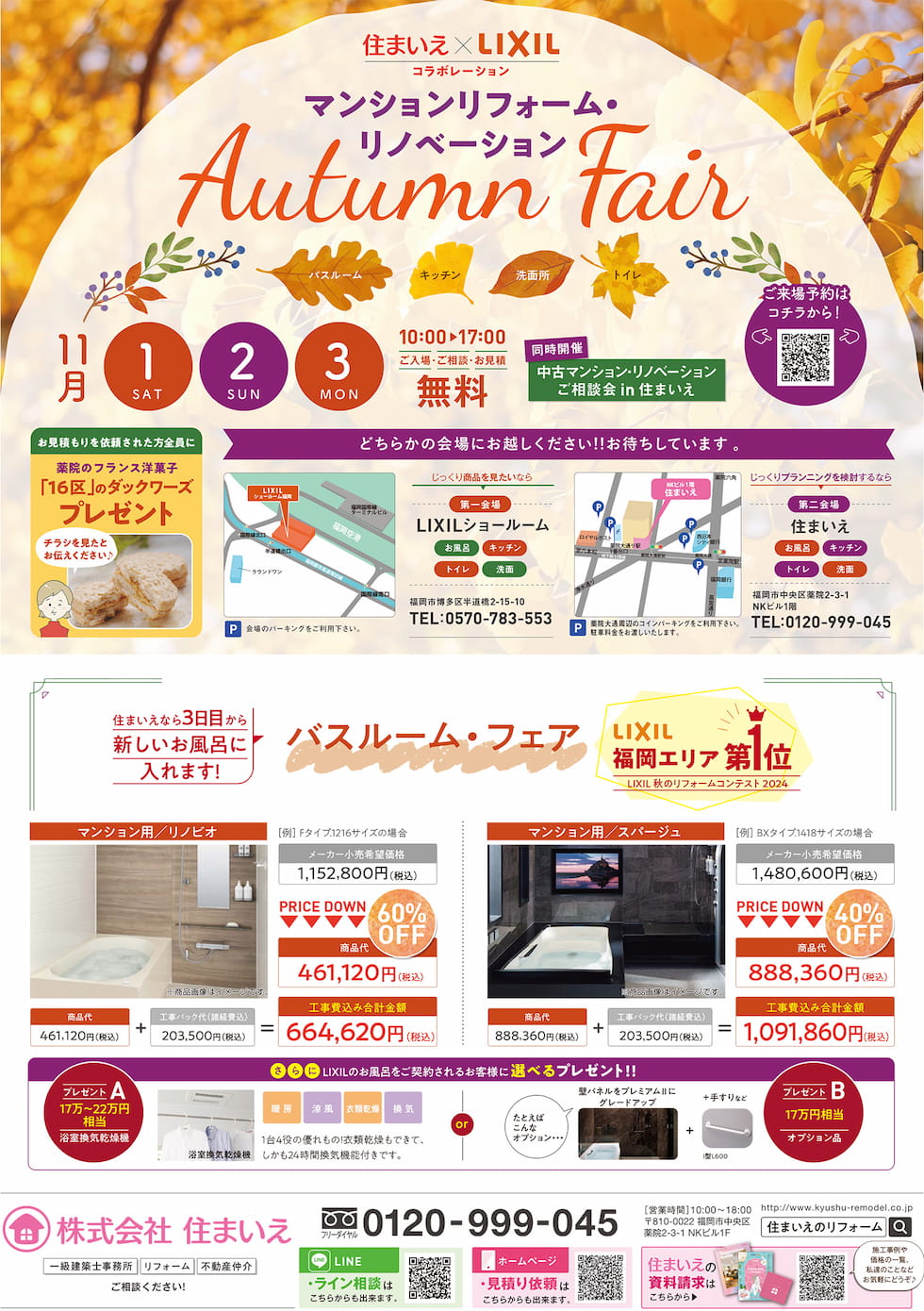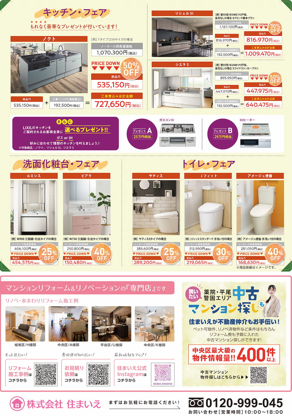 住まいえ×LIXIL×TOTOコラボレーション企画として、マンションリフォームリノベーションフェアを開催!住まいえ、LIXIL、TOTOショールーム各会場でお得なキャンペーンを実施します。