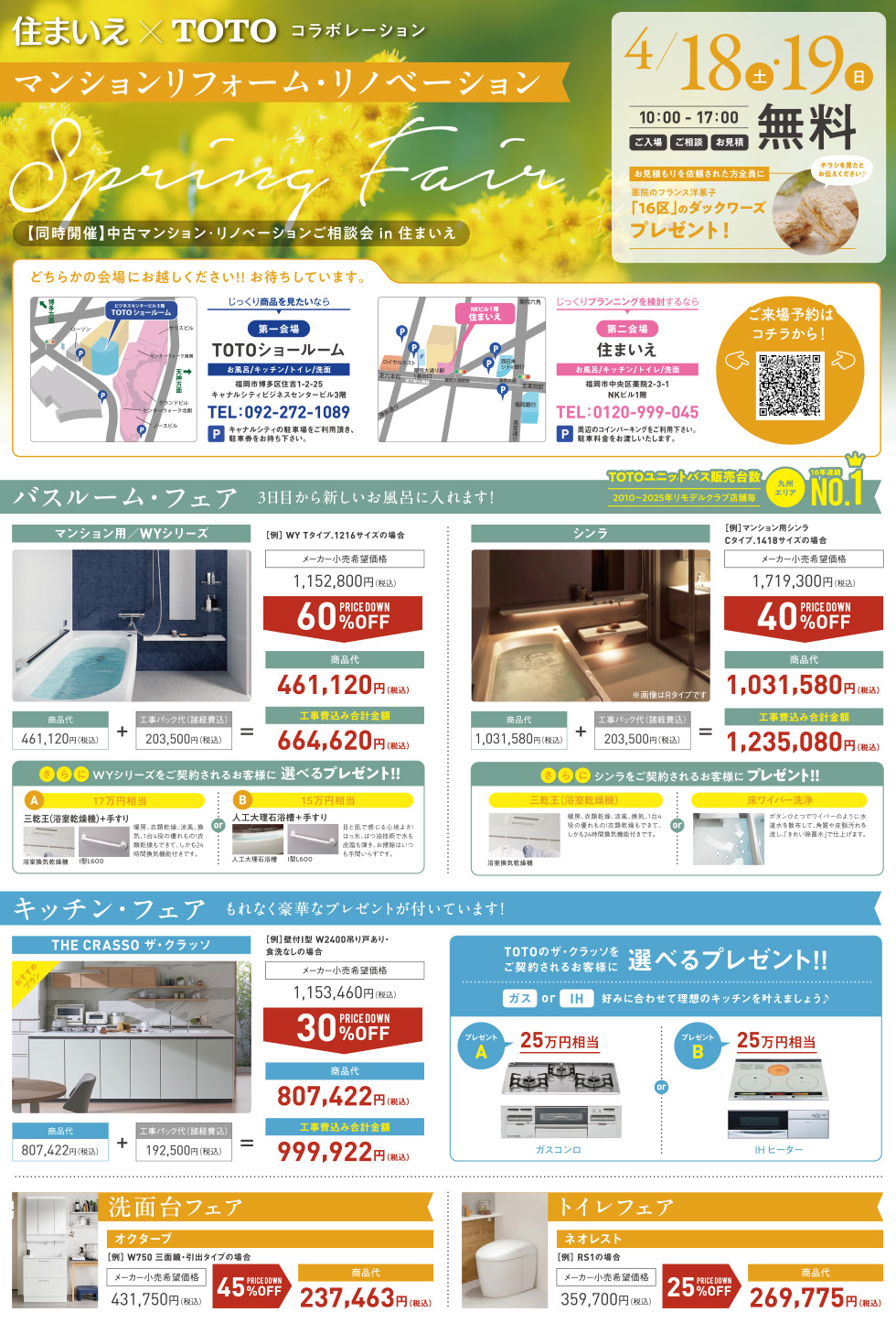 住まいえ×TOTOコラボレーション企画として、マンションリフォームリノベーションフェアを開催!住まいえ、TOTOショールーム各会場でお得なキャンペーンを実施します。