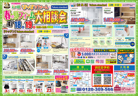 春のリフォーム大相談会開催!タカラスタンダードショールームで実際に商品をご体感!