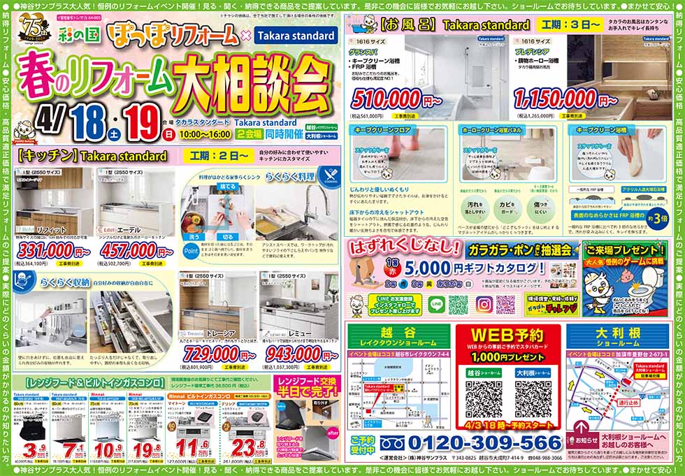 春のリフォーム大相談会では、タカラの商品をショールームで実際に見て触れてご体感いただけます!
