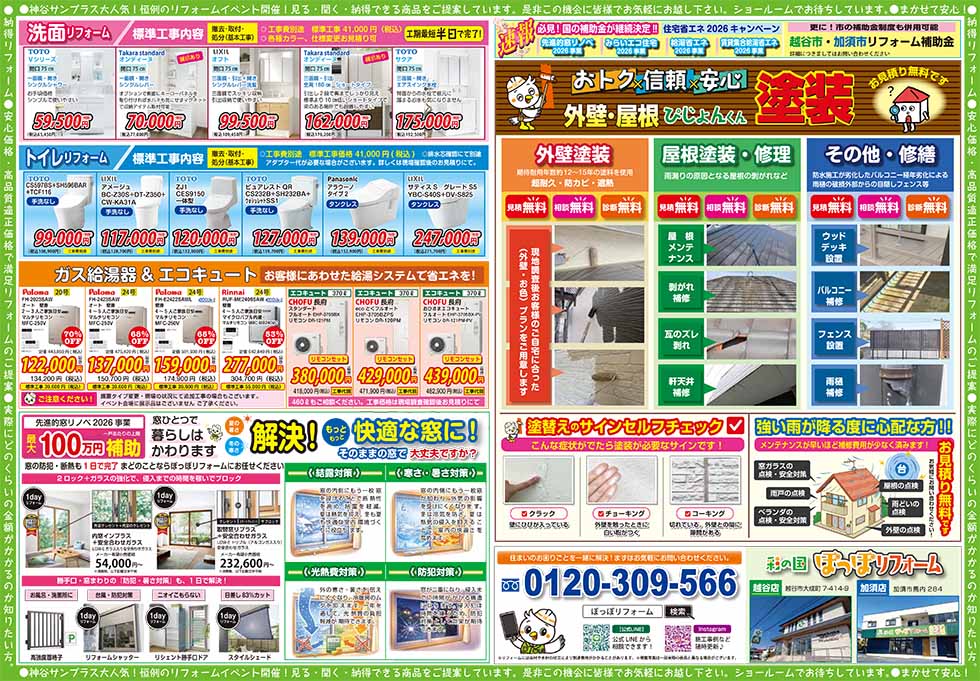 越谷市と加須市の補助金制度も併用可能となり、普段よりもさらに費用を抑えることができます。