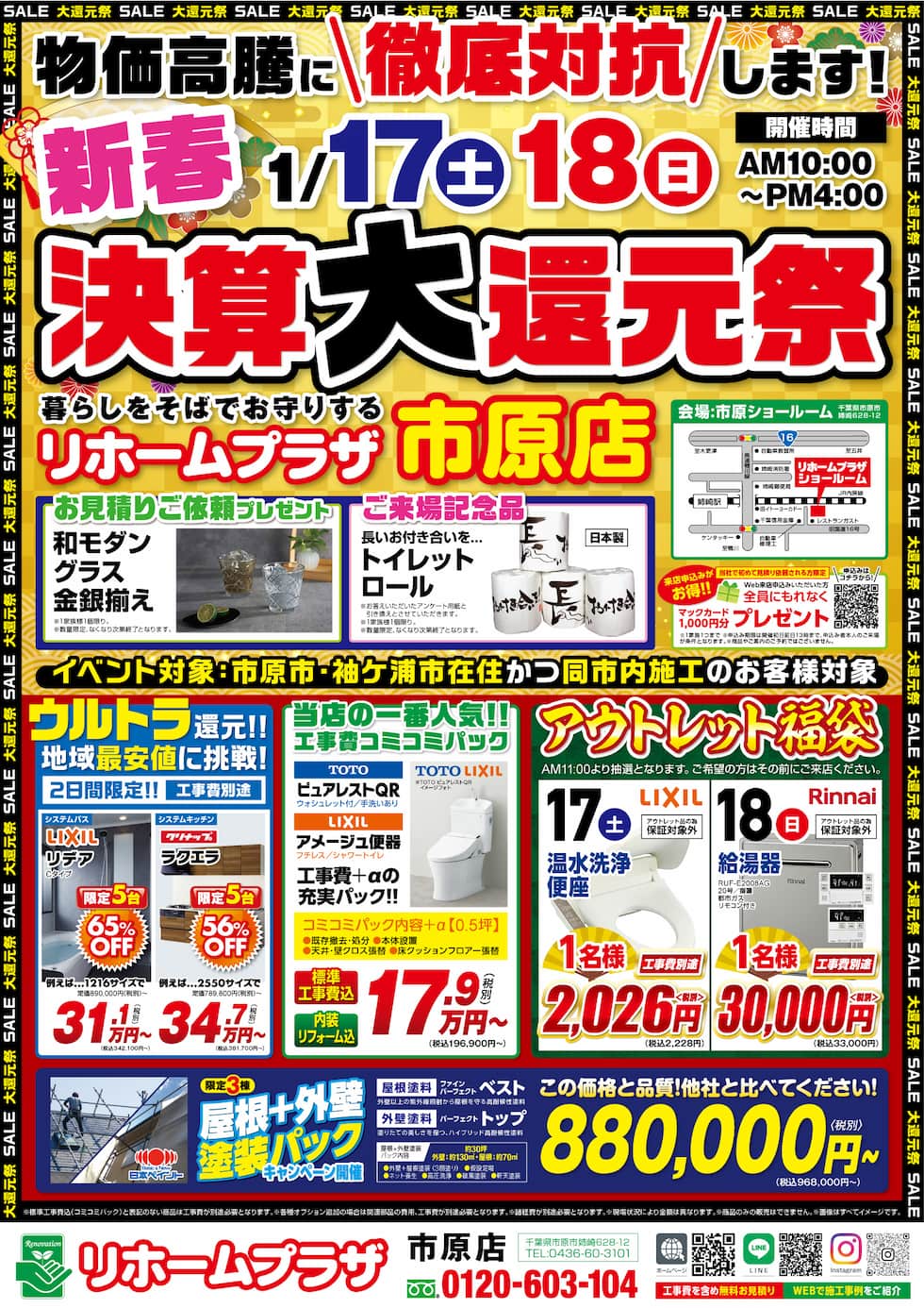 決算大還元祭では、割引率の高いオススメ商品がズラリと並びます!ウルトラ還元、地域最安値に挑戦の商品や、当店一番人気の工事費コミコミパック、さらに抽選で一名様に2,026円の温水洗浄便座が当たるアウトレット福袋などなど、見逃せない超お得な企画が盛りだくさん!